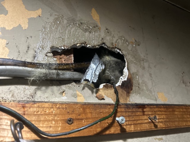 某飲食店の食品倉庫内にネズミが侵入。駆除後に埋没工事をしました。ご相談ください。