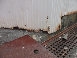 乾物を扱う倉庫にネズミが侵入。原因は倉庫外壁の老朽化です。トタン板がさびてボロボロになっていました。補修予算取ってくれるかなぁ。